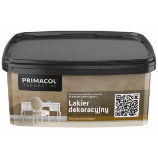 Декоративний лак (прозорий) TM «Primacol Decorative» (ТМ «Прімакол Декорейтів») – прозорий декоративний лак для захисту декоративних матеріалів таких, як травертин, венеціанська глина (штукатурка), декоративний бетон, паста Антіко, та інших виробів системи Primacol Decorative. Лак декоративний створює захисне покриття, що підвищує міцність поверхні, її зносостійкість, стійкість до забруднень, очистки та миття.